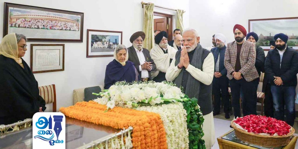 டில்லியில் இல்லத்தில் வைக்கப்பட்டுள்ள மன்மோகன் சிங் உடலுக்கு பிரதமர் மோடி அஞ்சலி செலுத்தினார்.