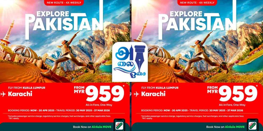 ஏர் ஆசியாவின் கராச்சி நகருக்கான நேரடி விமான சேவை எதிர் வரும் 30 மே 2025-ல் தொடங்குகிறது.