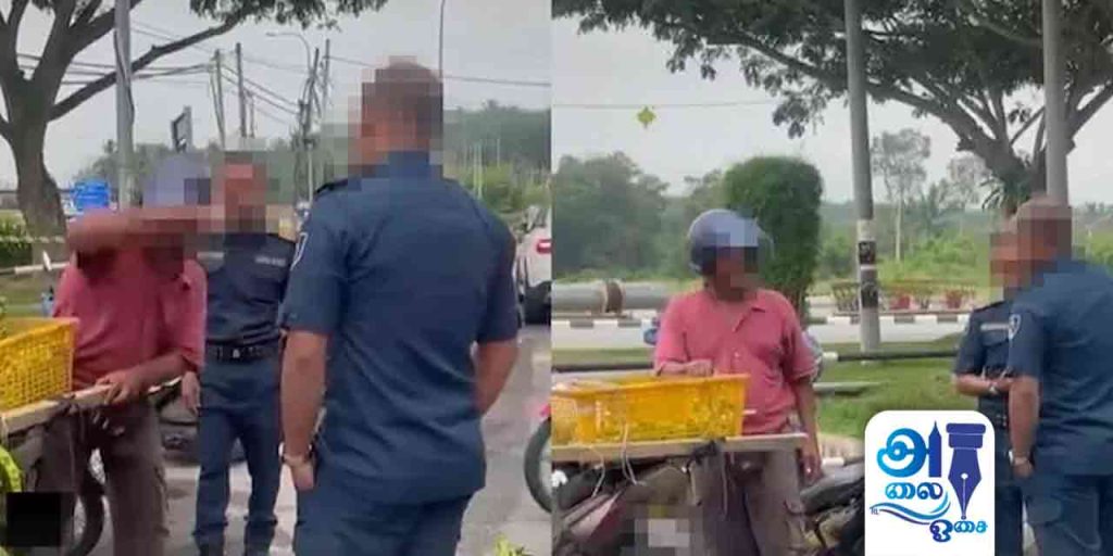 சாலையோரம் மோட்டார் சைக்கிளில் வியாபாரம் செய்து வந்த ஒரு முதியவருக்கும், நகராண்மைக் கழக அமுலாக்க அதிகாரிகளுக்கும் நடந்த சூடான வாக்குவாதத்தால், பெத்தாய்கள் சாலையில் பறந்த சம்பவம் வைரலாகியுள்ளது.