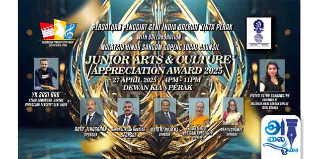 இளைஞர்களை ஊக்குவிக்கும் வகையில் ஜூனியர் கலை மற்றும் கலாச்சார பாராட்டு விருது 2025 இங்குள்ள கிந்தா இந்தியர் சங்க மண்டபத்தில் நடைபெறவிருக்கிறது.