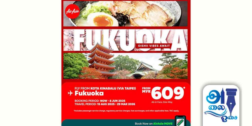 ஃபுகுயோகா நகருடன் கோத்தா தின பாலுவை இணைக்கும் இந்த கூடுதல் விமான வழிப்பாதை எதிர்வரும் 15 ஆகஸ்ட் 2025-ல் தொடங்குகிறது.