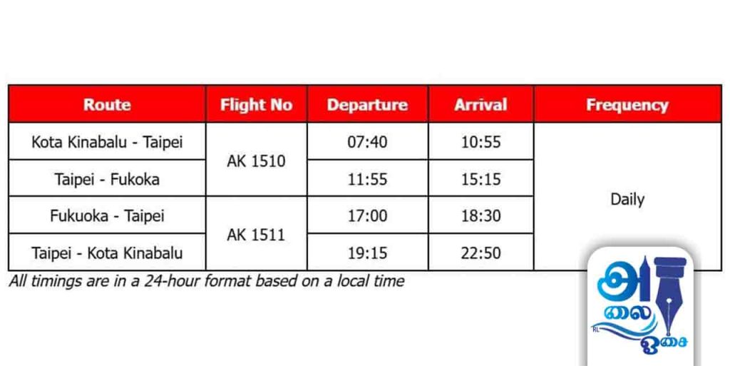 தனது இரண்டாவது பெரிய மையமான கோத்தா கினபாலுவிலிருந்து தைப்பே வழி ஜப்பானின் ஃபுகுயோகா நகருக்கு ஏர் ஆசியா புதிய விமான சேவையை மேற்கொள்ளவிருக்கிறது.