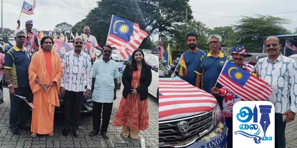 தேசியக்கொடிகளால் அலங்கரிக்கப்பட்ட மெர்டேக்கா கந்தப்பனின் வாகனத்தை முன்னிறுத்தி இந்த கொண்டாட்டம் நடைபெற்றது என்றார் அவர்.