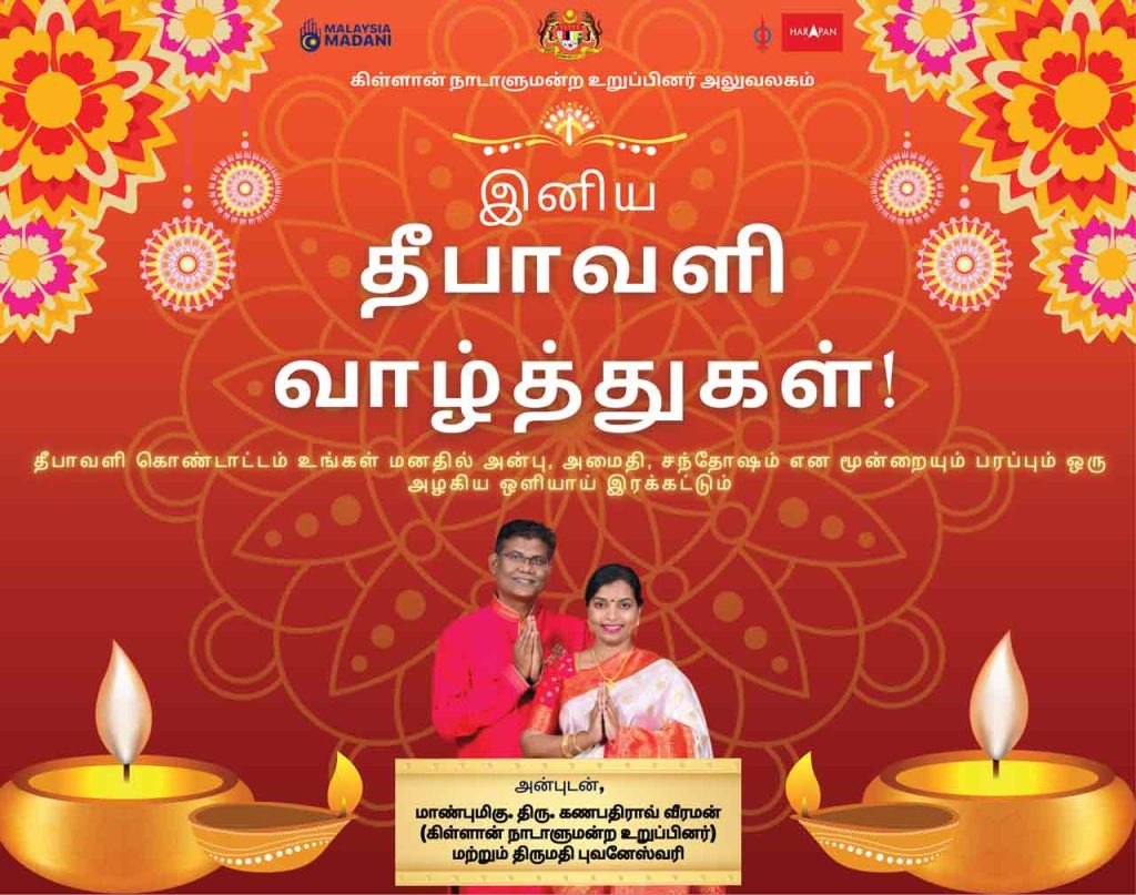 Malaysia மாண்புமிகு கணபதி ராவின் தீபாவளி வாழ்த்துகள் By admin October 17, 2025 0 90 Share FacebookTwitterPinterestWhatsApp Share FacebookTwitterPinterestWhatsApp Previous articleமாண்புமிகு யுனேஸ்வரனின் தீபாவளி வாழ்த்துகள்!Next articleமாண்புமிகு ஹன்னா இயோவின் தீபாவளி வாழ்த்துகள் adminhttps://alaiosai.com.my RELATED ARTICLES Malaysia மலேசிய தடகள தலைமை பொறுப்பிலிருந்து காரீம் விலக வேண்டும்! April 17, 2026 Malaysia கூட்டரசு பிரதேச விளையாட்டு மன்றத்துடன் தடகள சங்கம் சந்திப்பு! April 17, 2026 Malaysia தப்பி ஓடியவரை கண்டுபிடித்தால் வெ5,000 சன்மானம் வழங்குகிறார் கெப்போங் எம்பி April 17, 2026 LEAVE A REPLY Cancel reply Comment: Please enter your comment! Name:* Please enter your name here Email:* You have entered an incorrect email address! Please enter your email address here Website: Save my name, email, and website in this browser for the next time I comment. Most Popular தமிழ்நாடு தேர்தல் என்பது இந்தியாவின் உலகளாவிய மரியாதைக்கான ஒரு சோதனையும் ஆகும்! April 19, 2026 மலேசிய தடகள தலைமை பொறுப்பிலிருந்து காரீம் விலக வேண்டும்! April 17, 2026 கூட்டரசு பிரதேச விளையாட்டு மன்றத்துடன் தடகள சங்கம் சந்திப்பு! April 17, 2026 தப்பி ஓடியவரை கண்டுபிடித்தால் வெ5,000 சன்மானம் வழங்குகிறார் கெப்போங் எம்பி April 17, 2026 Load more
