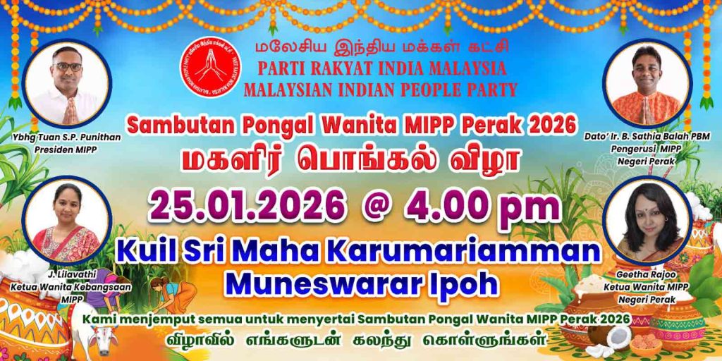 பேராக் மலேசிய இந்திய மக்கள் கட்சி மகளிர் அணியின் மகளிர் பொங்கல் விழா வெகு சிறப்பாக நடைபெறவுள்ளது.