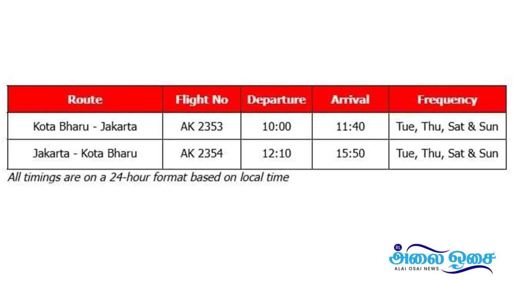 எதிர் வரும் 16 ஜூன் 2026 முதல் வாரத்திற்கு 4 முறை இந்த நேரடி விமான சேவையை ஏர் ஆசியா மேற்கொள்ளவிருக்கிறது.