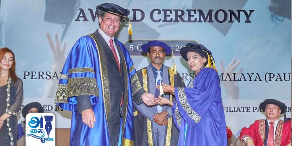 மலேசிய சுங்கத்துறை இலாக்காவில் உதவி தொழில் நுட்ப தகவல் அதிகாரியான கோமதி சுப்பிரமணியம் சமூக பணிகளில் கௌரவ டாக்டர் விருது பெற்றார்.
